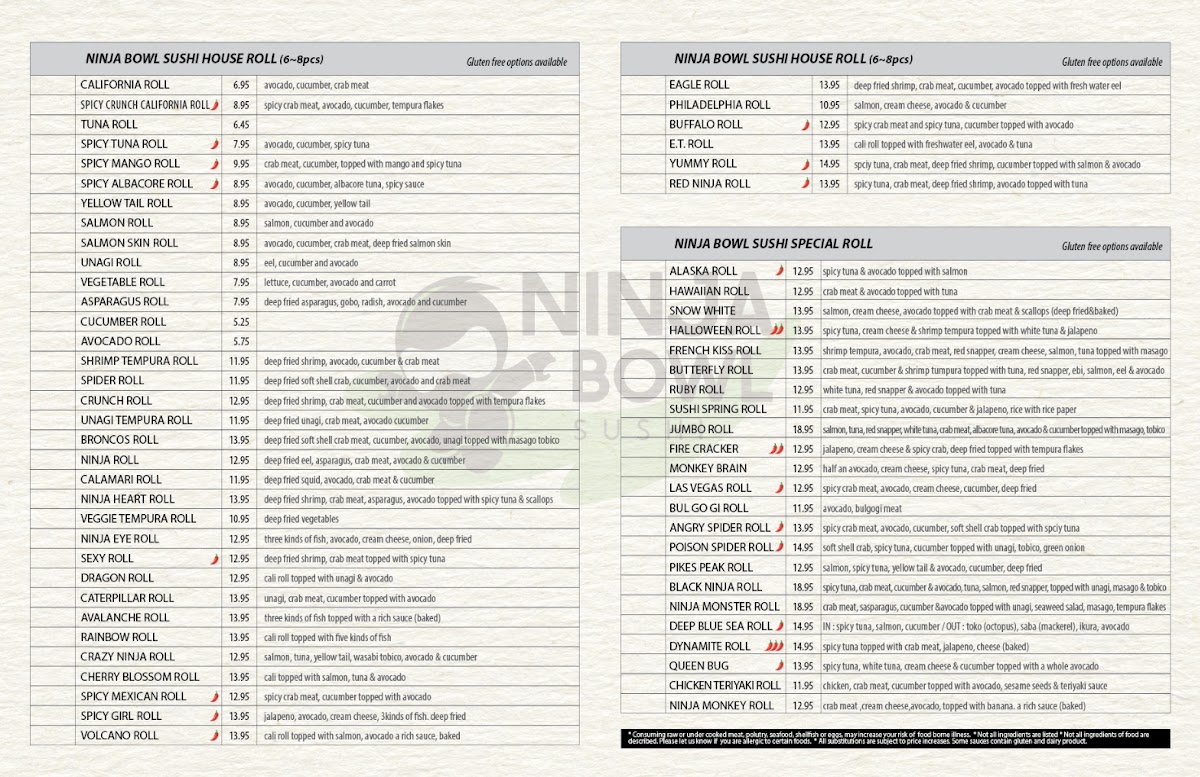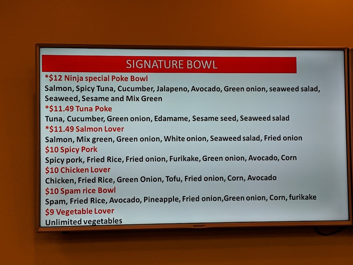 Ninja Bowl Sushi Menu (Update 2025)